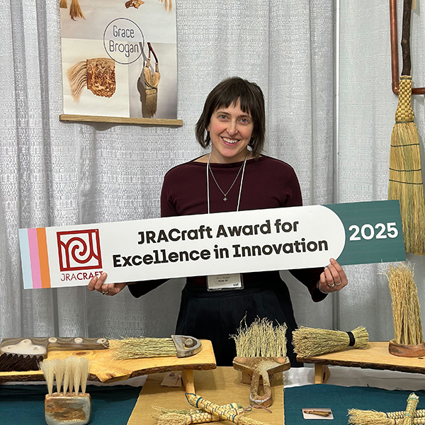 Grace Brogan is an artist and broom maker practicing at the intersection of traditional craft and contemporary design. She earned a BA in art before embarking on over a decade of study with craftspeople in ceramics, wood, and textiles, including broom makers in 2009, 2019 & 2023. Grace explores familiar household forms and sculptural objects, playing in the space of mindful and mundane, labor and ritual, ordinary and extraordinary. She grew up in Minnesota and maintains a studio in Missoula.