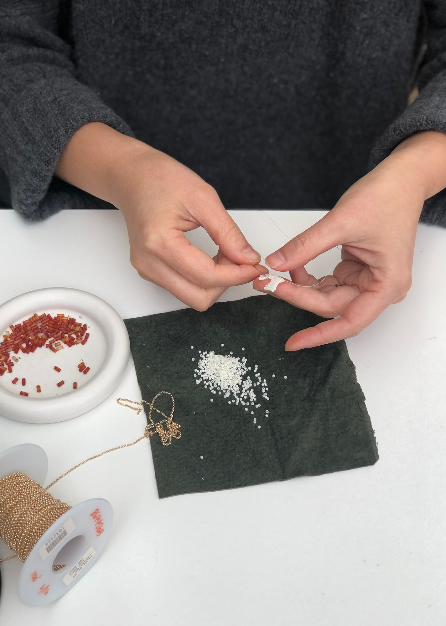 “With beading, you use a thread and needle, which I’m so familiar with as a clothing designer.”