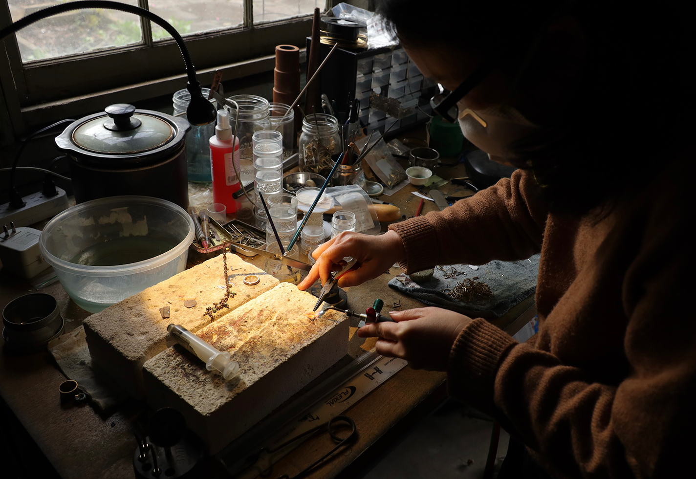 Wenjing Yang started making jewelry as a hobby, giving her creations to friends and loved ones as gifts. But the Portland, Oregon–based jewelry designer, who sells her work under the name A Nod to Design, encountered a noxious roadblock. About a year into working with metal, the toxic effects had started to take root. “My lungs had a lot of problems with the soldering and the fumes,” she says. “I had this cough that nobody could figure out.” She needed to find a balance.