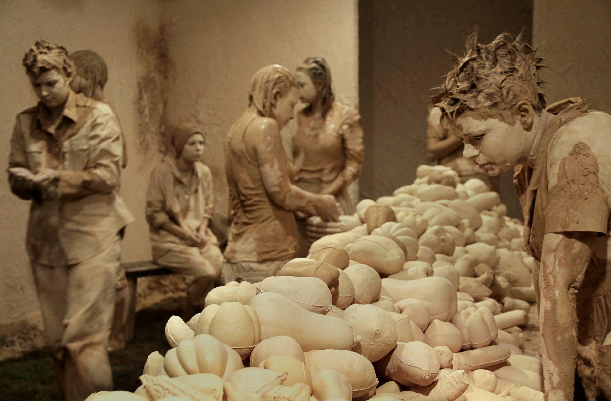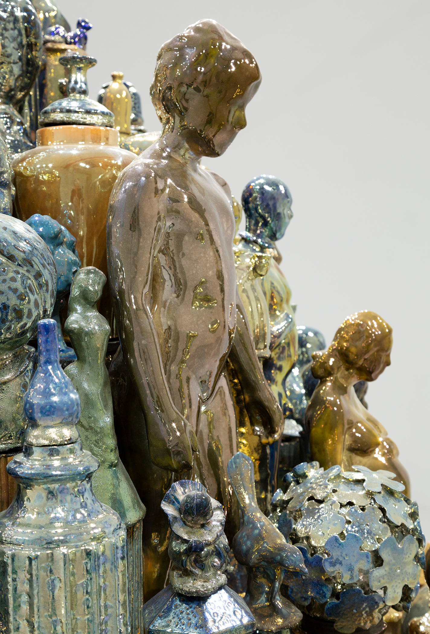 “Repetition is a strategy to achieve ambitious scale in clay,” Cross says. But it’s not only a technique for building. Repetition amplifies an artist’s message. “The language of repetition and multiples—gathering, bringing together, uniting—articulates the sensibility of these works and the goals of this exhibition.”
