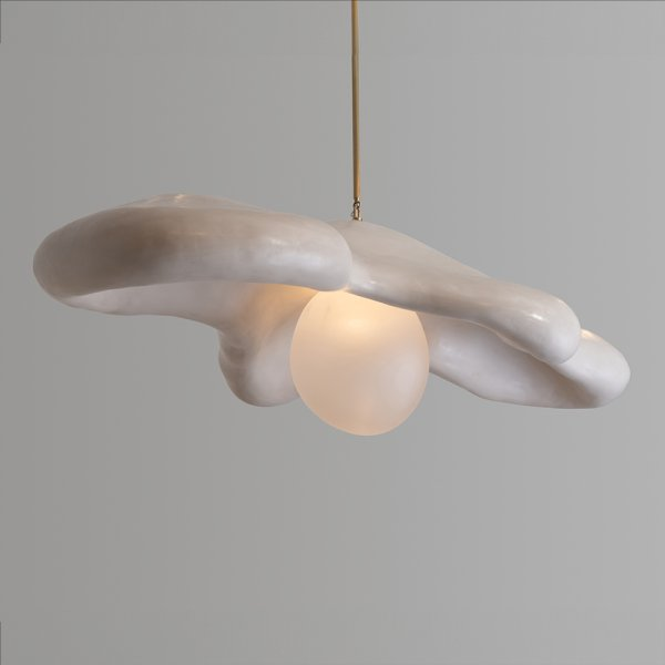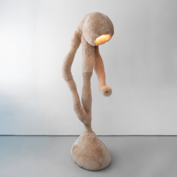 Some objects gesture toward animals, others at primordial plants, and several evoke hybrids of both flora and fauna. A chandelier with multiple arms blooms and hovers from the ceiling like a many-headed hydra. The textured seat of a splay-legged stool is gently rounded in the manner of a tortoise’s back. And a flock of crook-necked bronze Dune lights peer inquisitively toward a monolithic Venus of Willendorf. Some forms conjure desert-bleached bones; others, excavated artifacts or floating tendrils of kelp. And many pieces evoke humor—such as floor lamps that appear poised to break out in a Merce Cunningham solo. By marrying his imagination and reverence for nature with his fabrication prowess, Gregory creates pieces akin to the love children of Dr. Seuss and Isamu Noguchi.