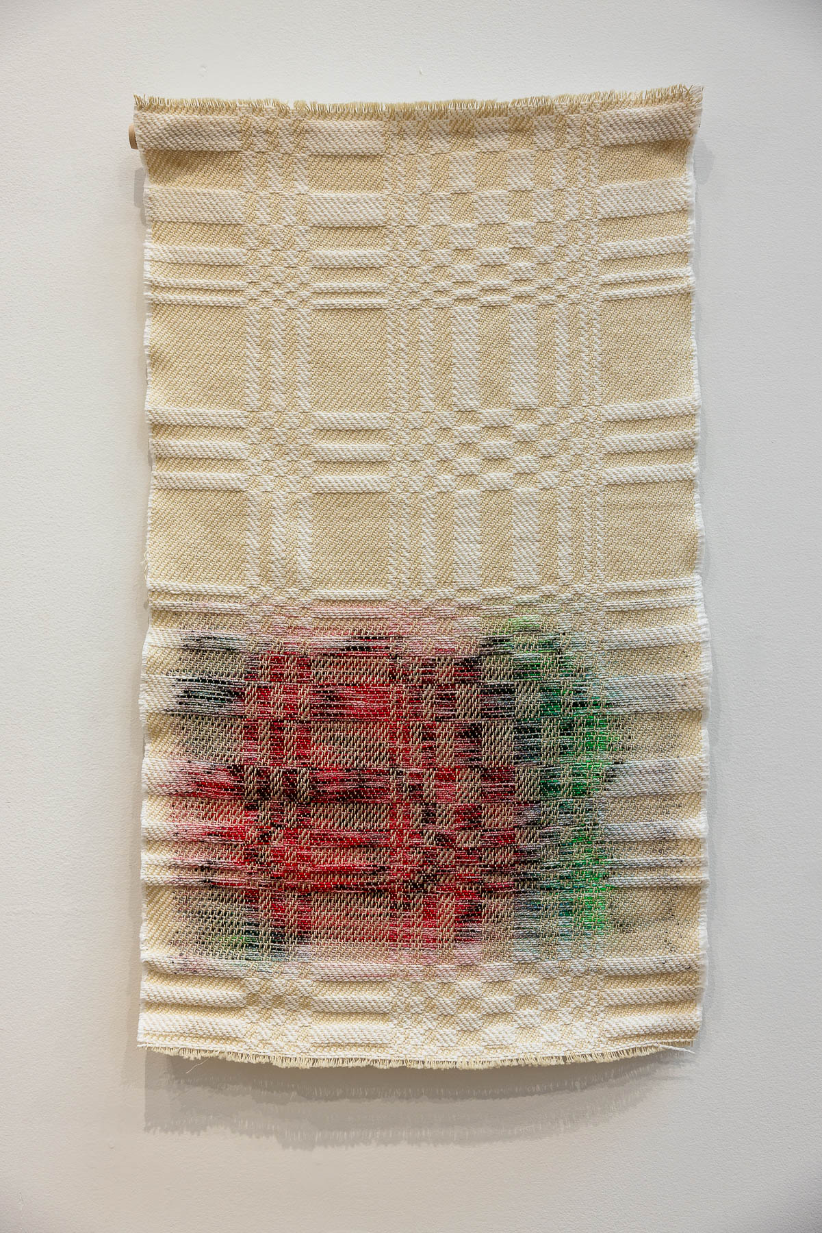 Sasha Baskin’s twill weaving Glitch Rose (2019) serves as a perfect example of the latter: The piece incorporates an airbrushed rose painted onto the weft by a downtown Gatlinburg T-shirt vendor, the imagery inspired by Baskin’s countless nights obsessively watching The Bachelor.