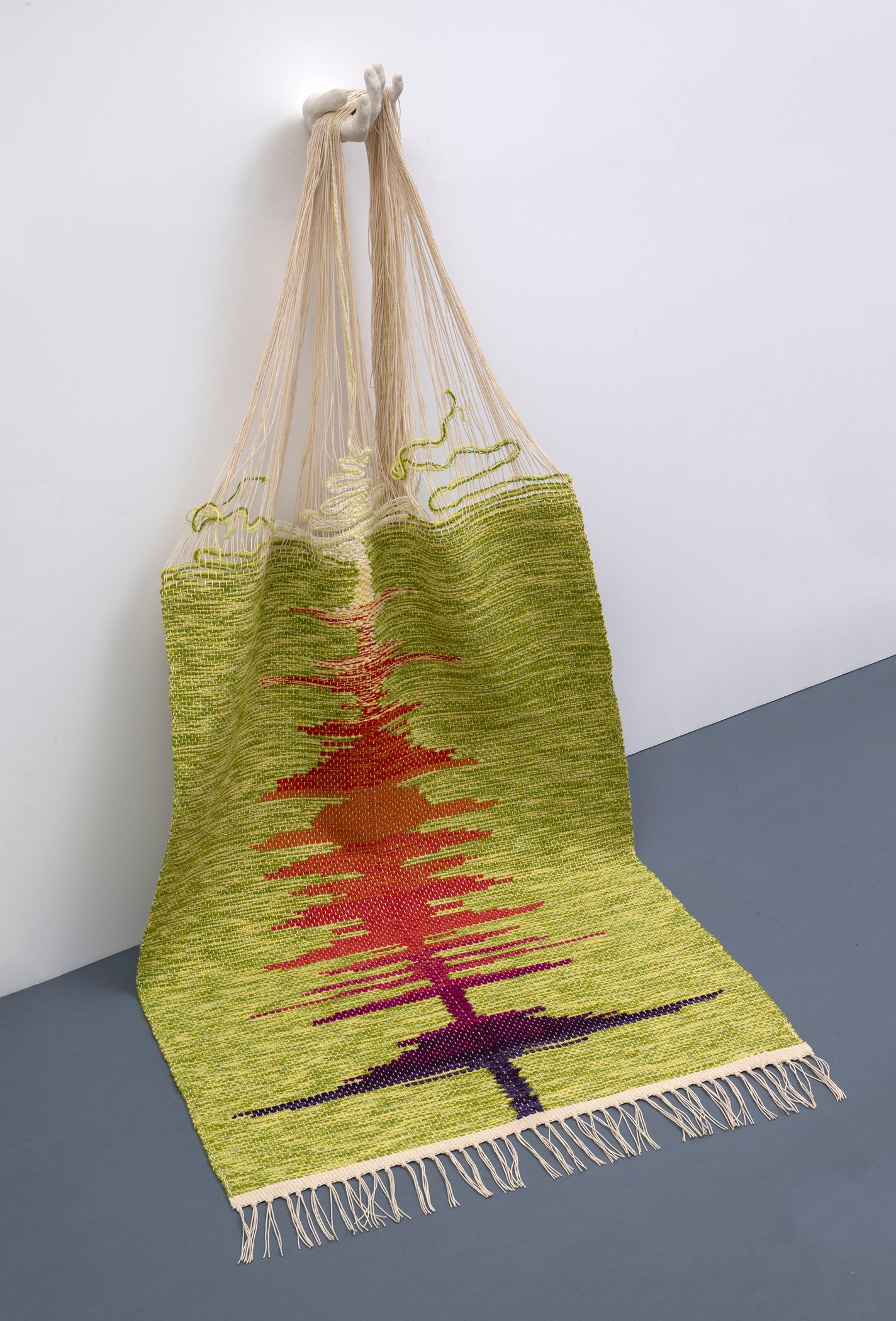 Free Will, 2024, handwoven wool and cotton, hydrostone, 36 x 25 x 18 in.