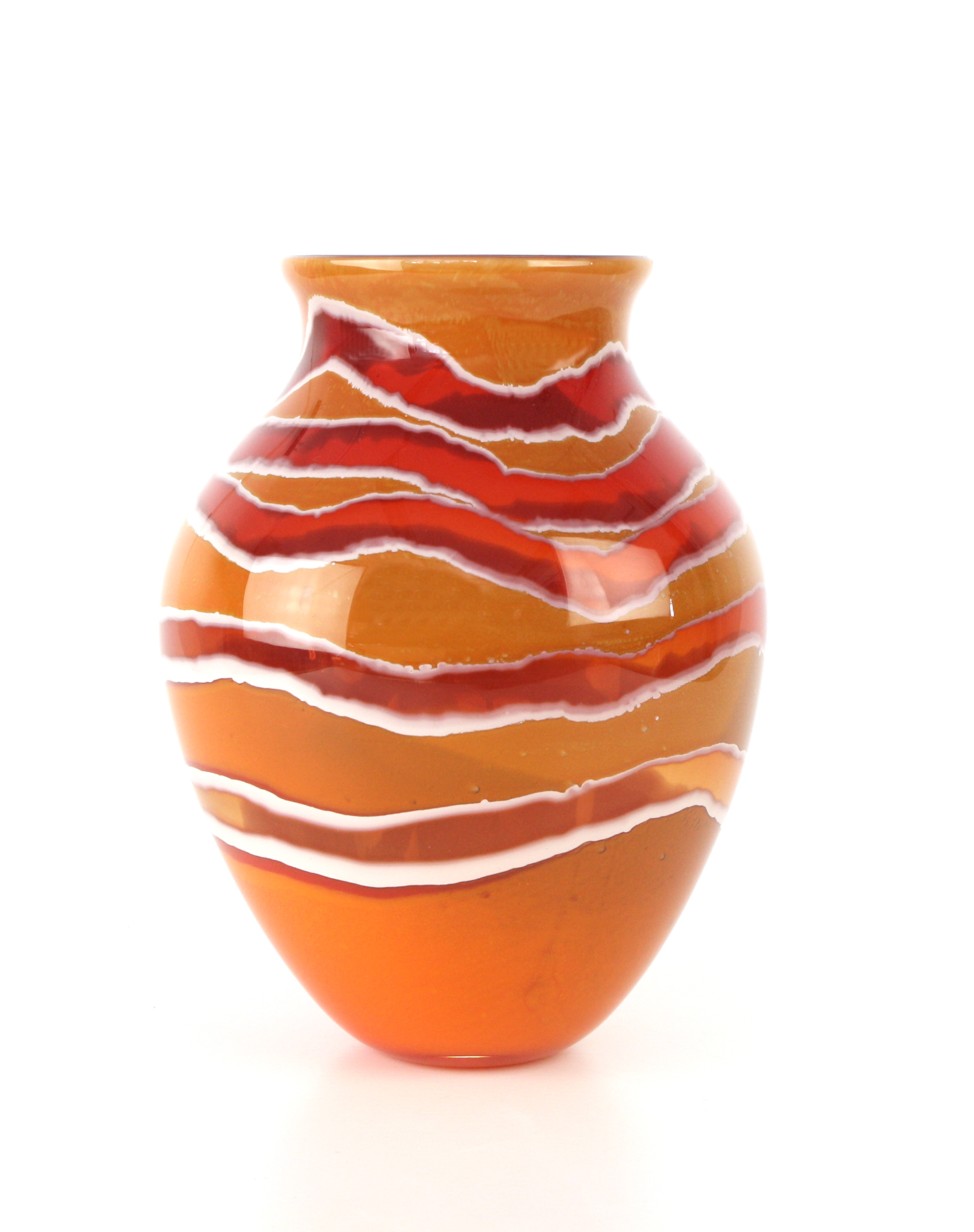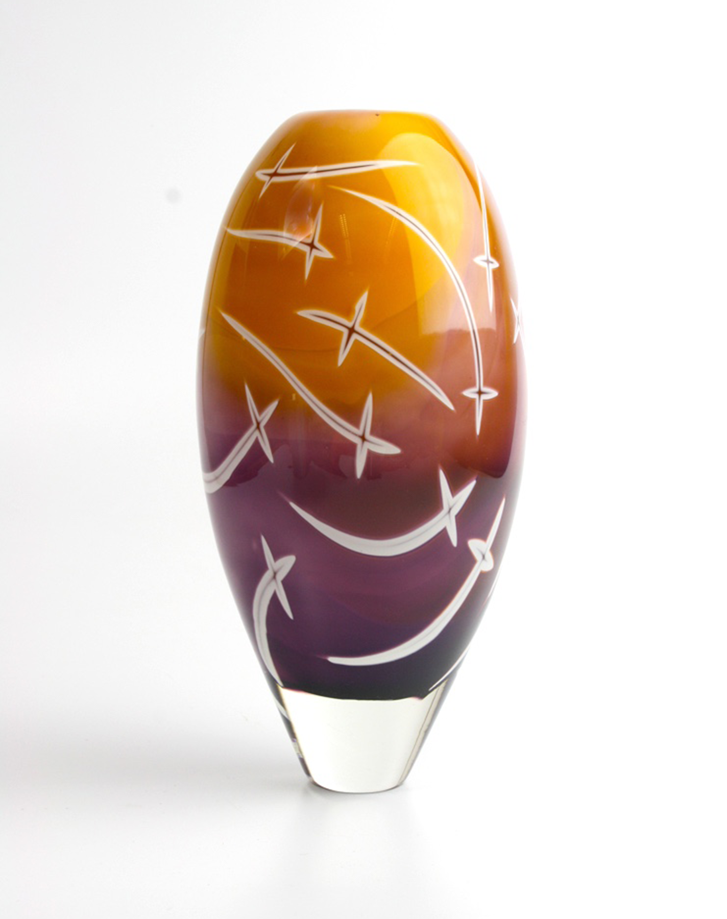 The 2024 blown glass vase Desert Sky uses the Swedish overlay technique, 9 x 3 x 3 in.