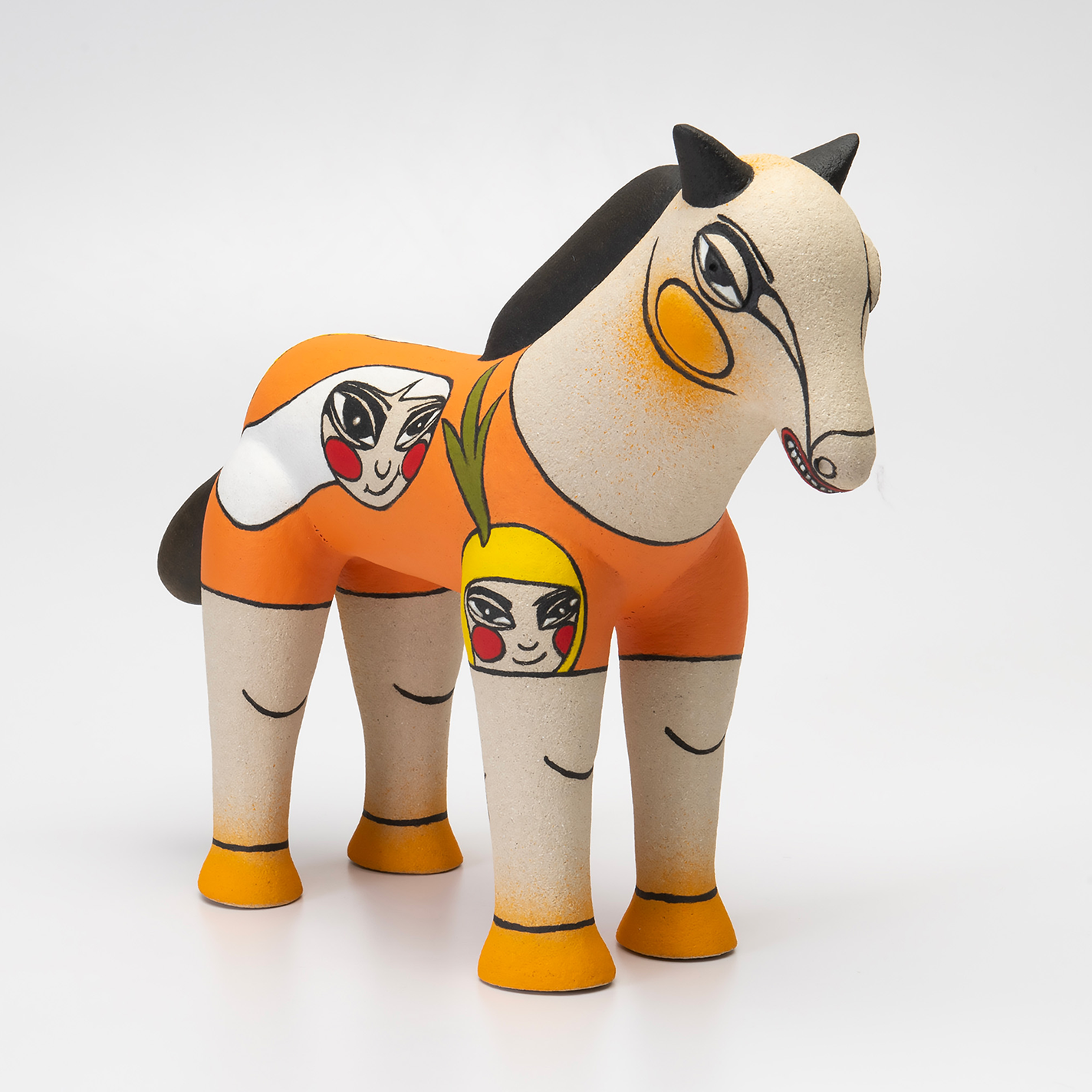 The Sun Horse, 2026, stoneware, underglaze, paint, 12 x 16 x 5 in.