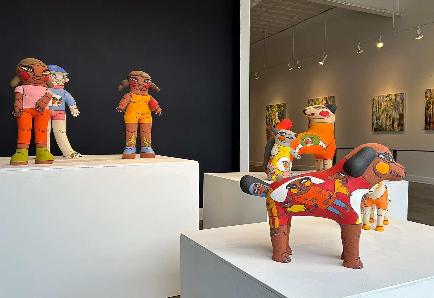 The figurative sculptures are all done in stoneware with vivid underglaze paint by Janina Myronova, a Ukraine-born ceramist and sculptor who’s having a moment, and gallerist R. Duane Reed is smitten.