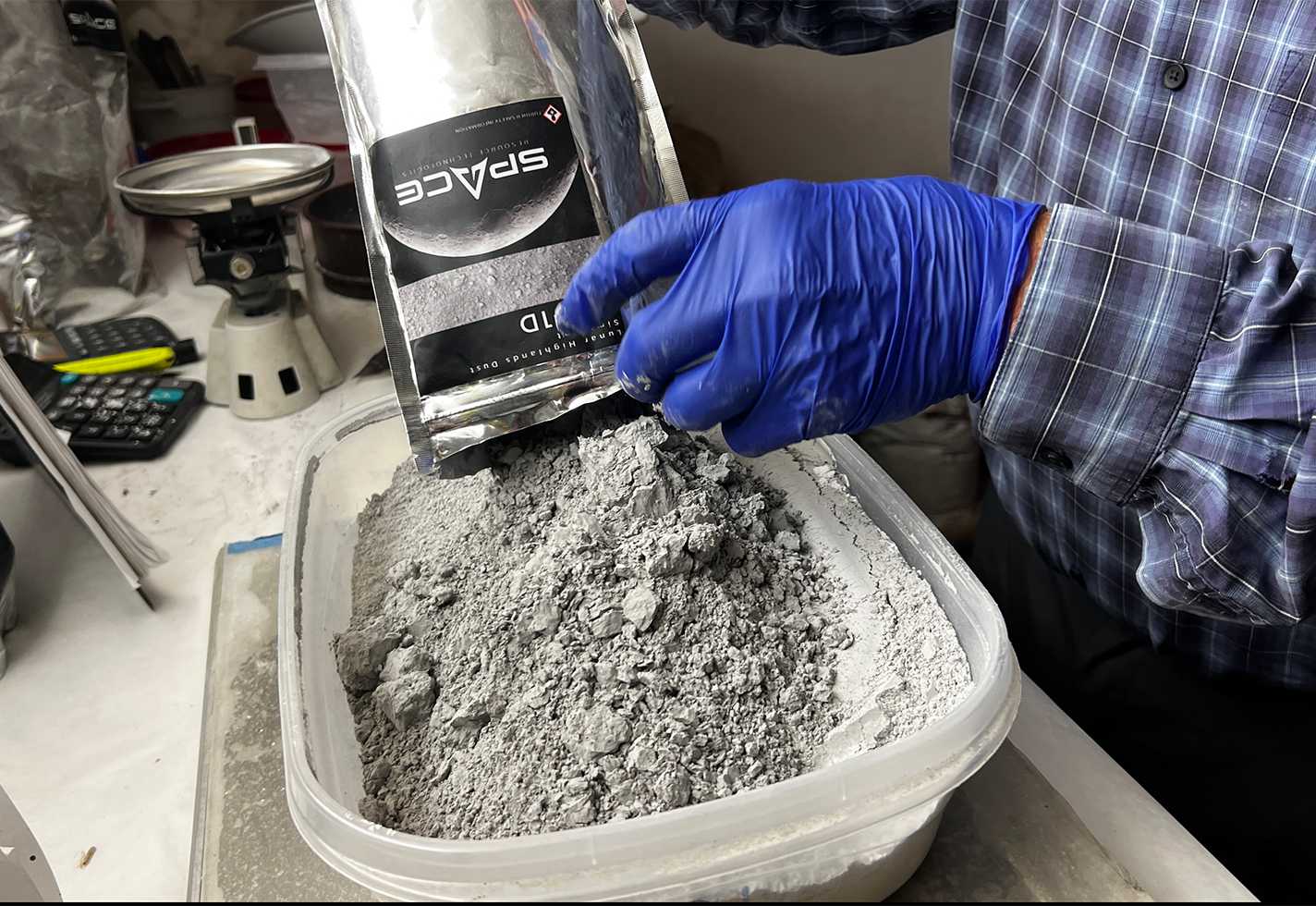 Simpson experimented with simulated moon dust from Space Resource Technologies, a company that replicates the chemical and physical properties of lunar and Martian regolith.