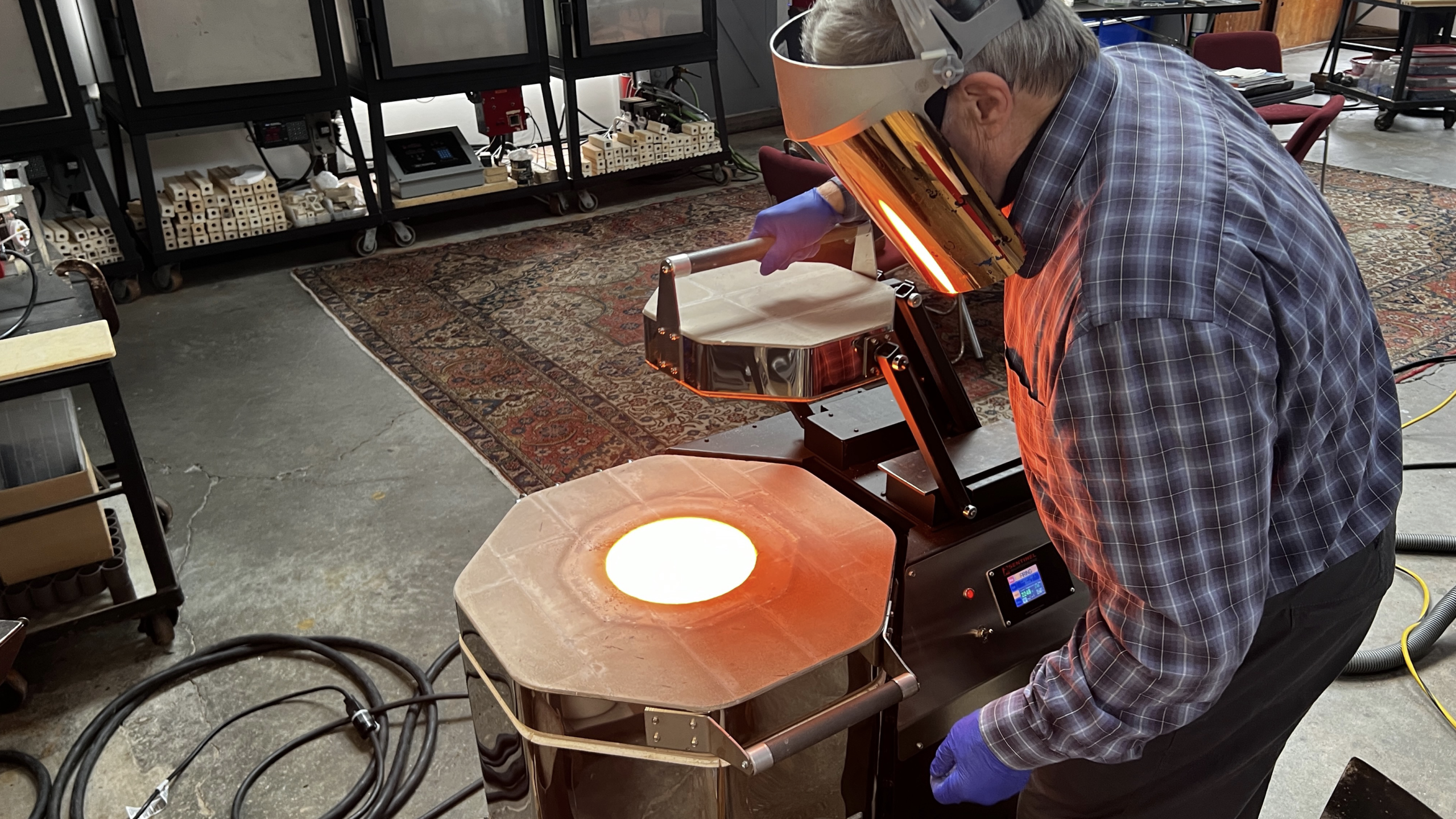 With the grant money, he purchased simulated moon dust from Space Resource Technologies, a company that replicates the chemical and physical properties of lunar and Martian regolith. He also purchased a small electric melting furnace. That furnace was the first one he had ever bought—always the tinkerer, he had been building his own his whole career.