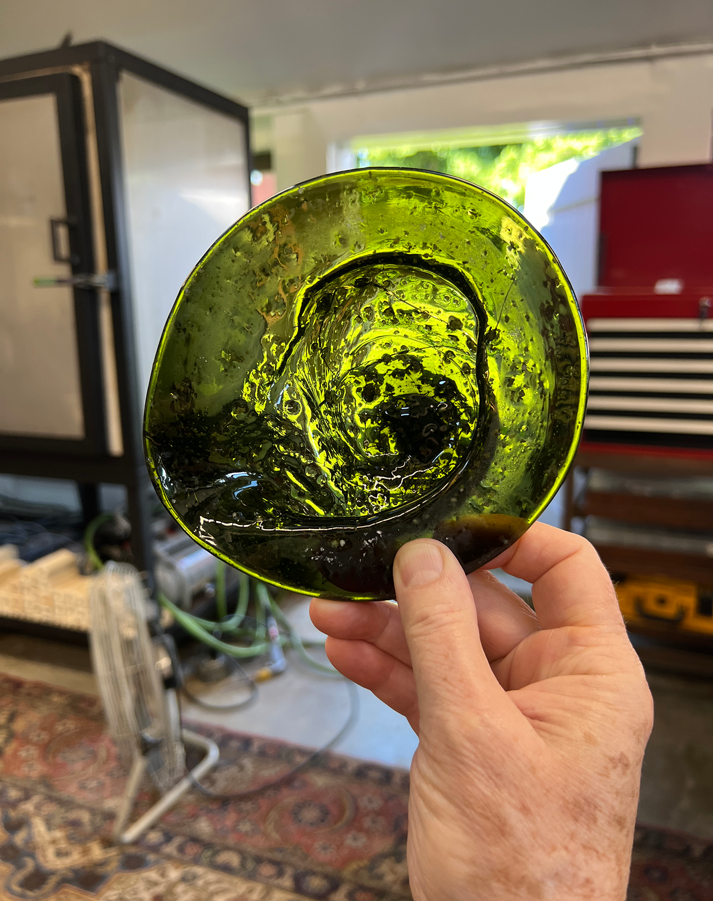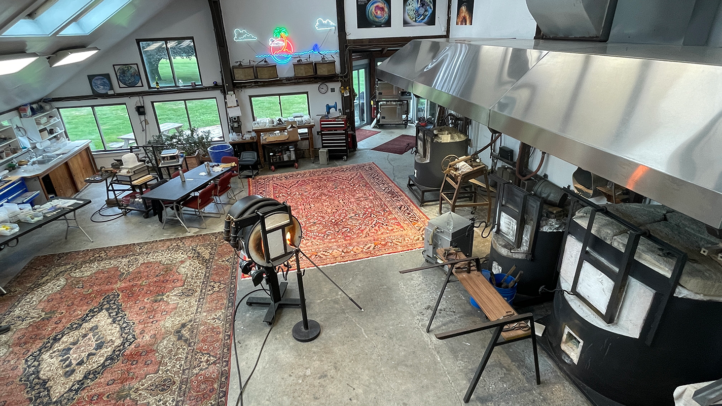Simpson's thoroughly earthbound glass studio in Shelburne Falls, Massachusetts.
