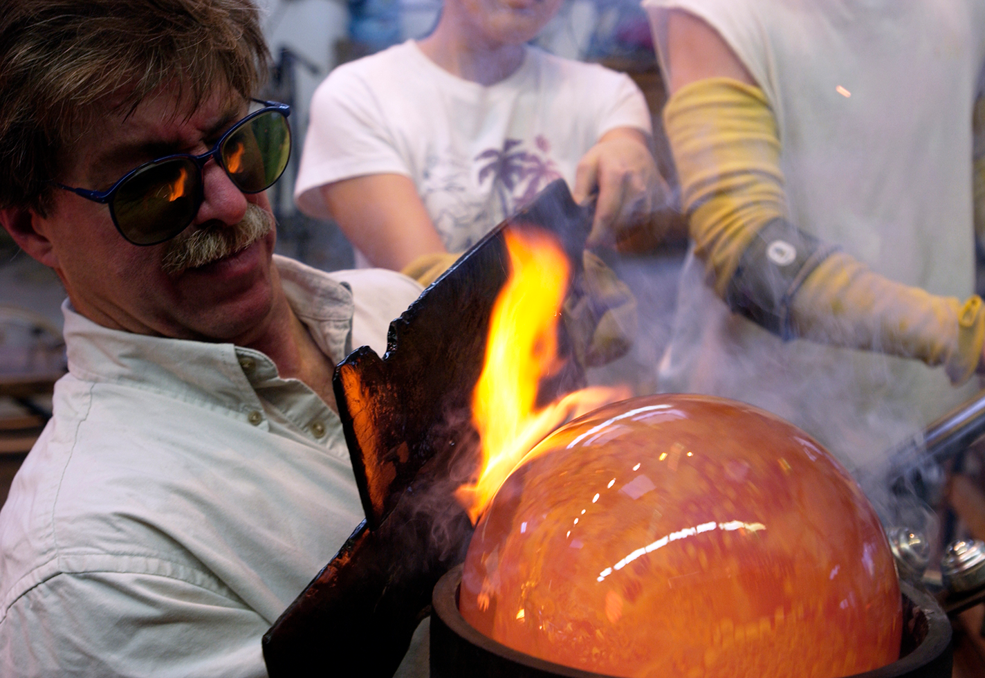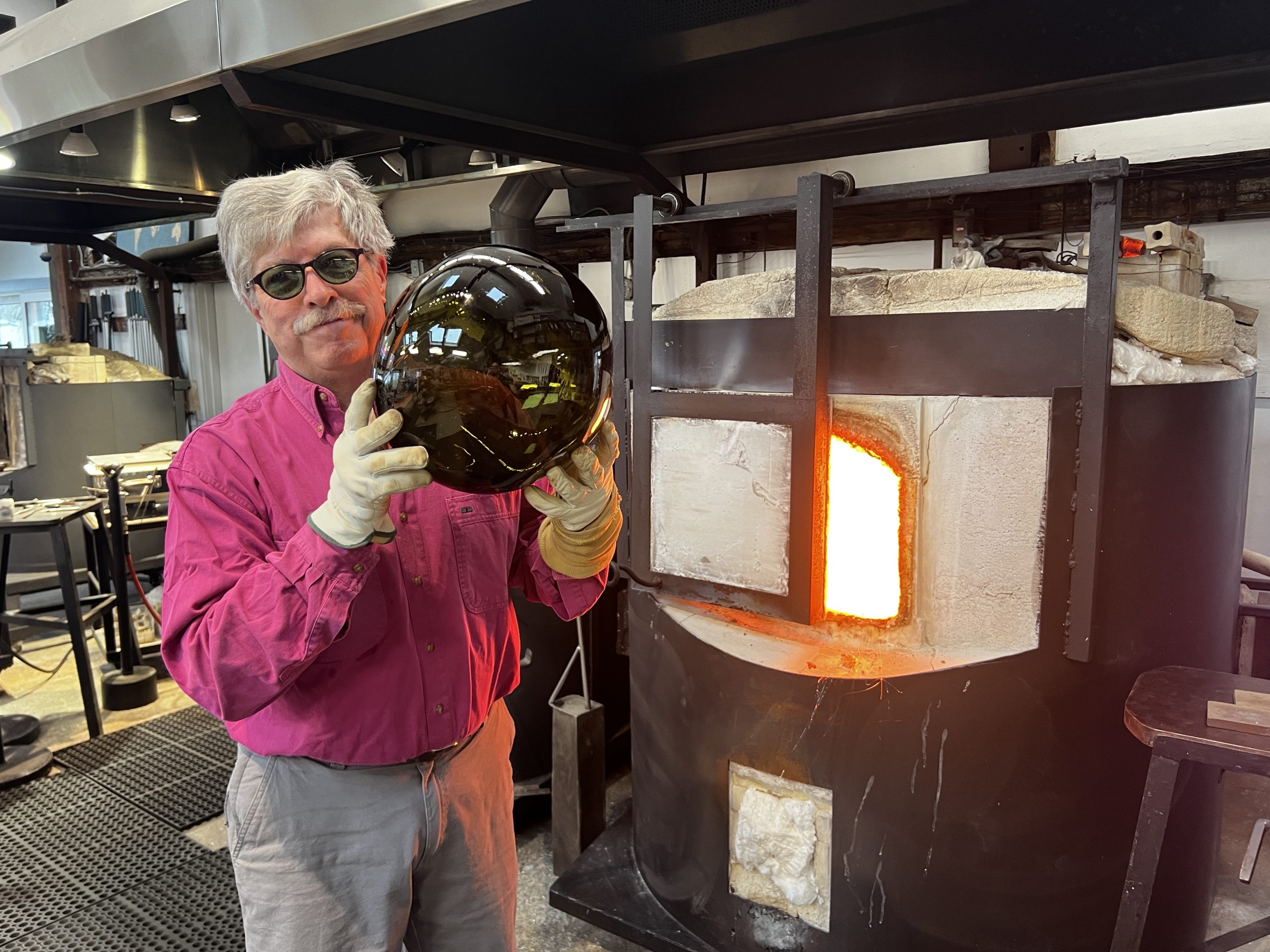 Josh Simpson at a furnace in his glass studio.