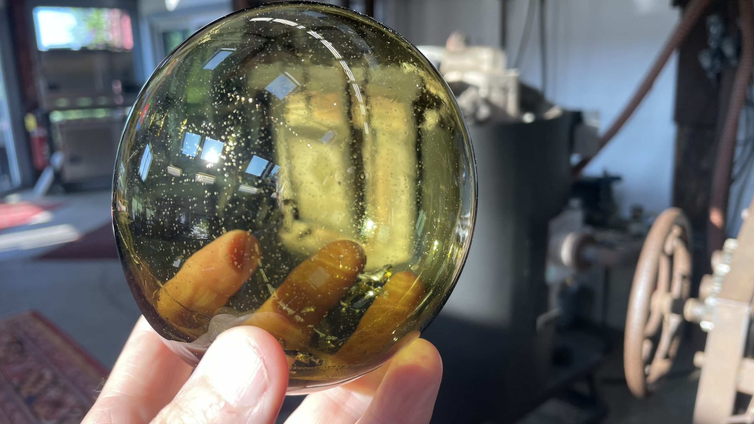 Blowing glass on earth requires gathering molten glass in a furnace onto the end of a long tube called a blow pipe. After blowing the molten glass into a bubble, the glassblower then must keep the pipe rotating while shaping the piece. Using the regolith and a boron-heavy flux, last summer, Simpson made a basketball-sized sphere.