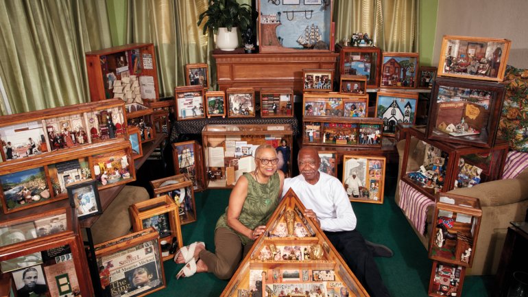 In 1971, Collins followed her family to Compton, where she met her husband and collaborator, Eddie Lewis. Her obsession with miniatures intensified when, in the 1990s, her son was arrested just before his high school graduation. “I began creating these scenes because I wanted another chance to teach children about their worth as human beings,” she says.