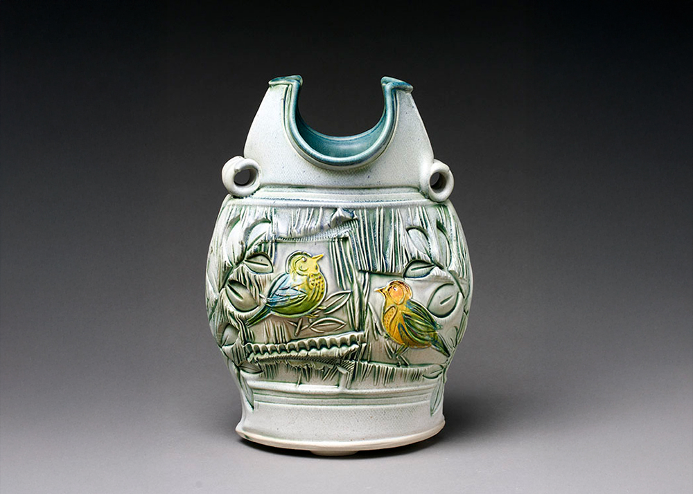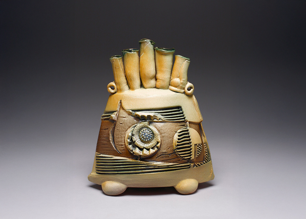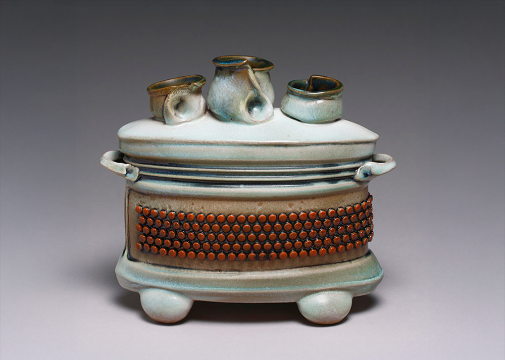Sandra stepped down as director of Arrowmont in 2001 and, in 2004, became Professor Emerita at the University of Tennessee, allowing her to spend more time in the studio. Her slab-constructed pieces—while primarily functional—exhibit a deep texture she produced by imprinting found objects or natural materials, and she achieved a depth of color through glazing and sprayed overglazing. Her appreciation for the natural world was also embedded in her work.