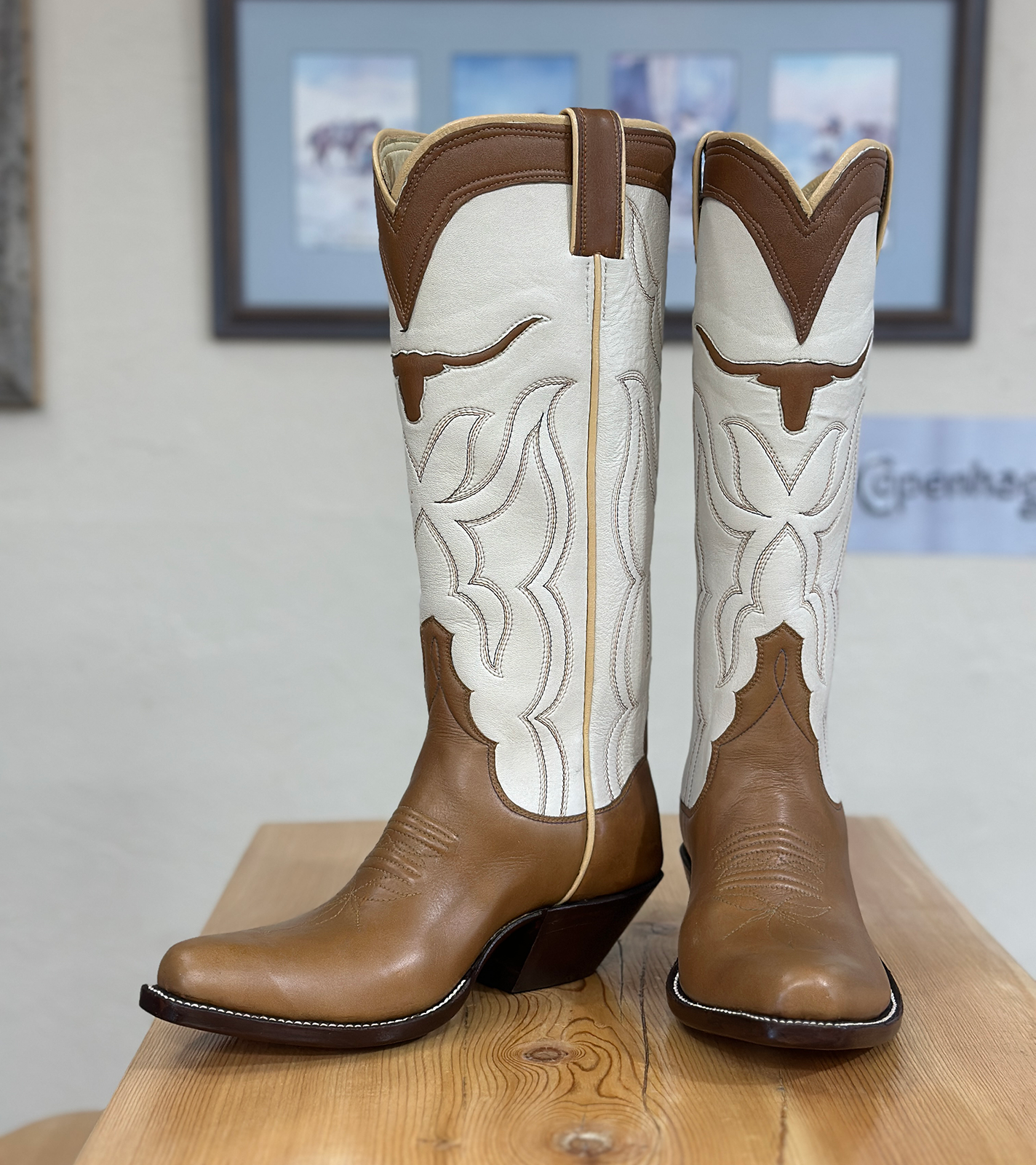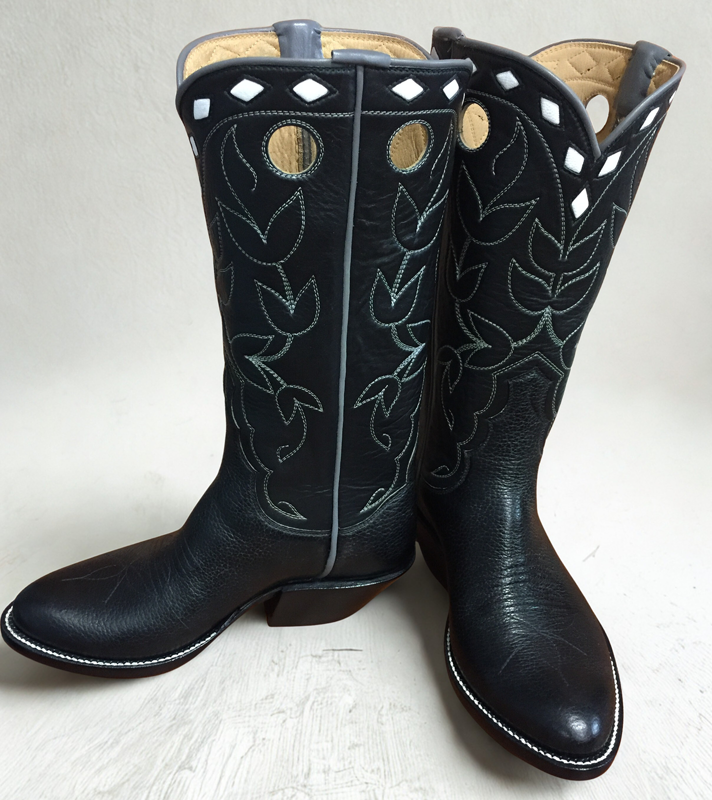 Bootmaking entered Dan’s life somewhat unexpectedly. During the fall of 1997, he was raising Angus cattle, but when cattle prices dropped he began considering other options. A visit to Blacktail Bootery, a local repair shop in Dillon, changed his course. One conversation with the bootmaker eventually led to a complete shift in direction—he sold his cattle and took over the shop. In 2000, he formally studied the trade with veteran bootmaker Carl Chappell in St. Jo, a rural Texas town near the Oklahoma border.