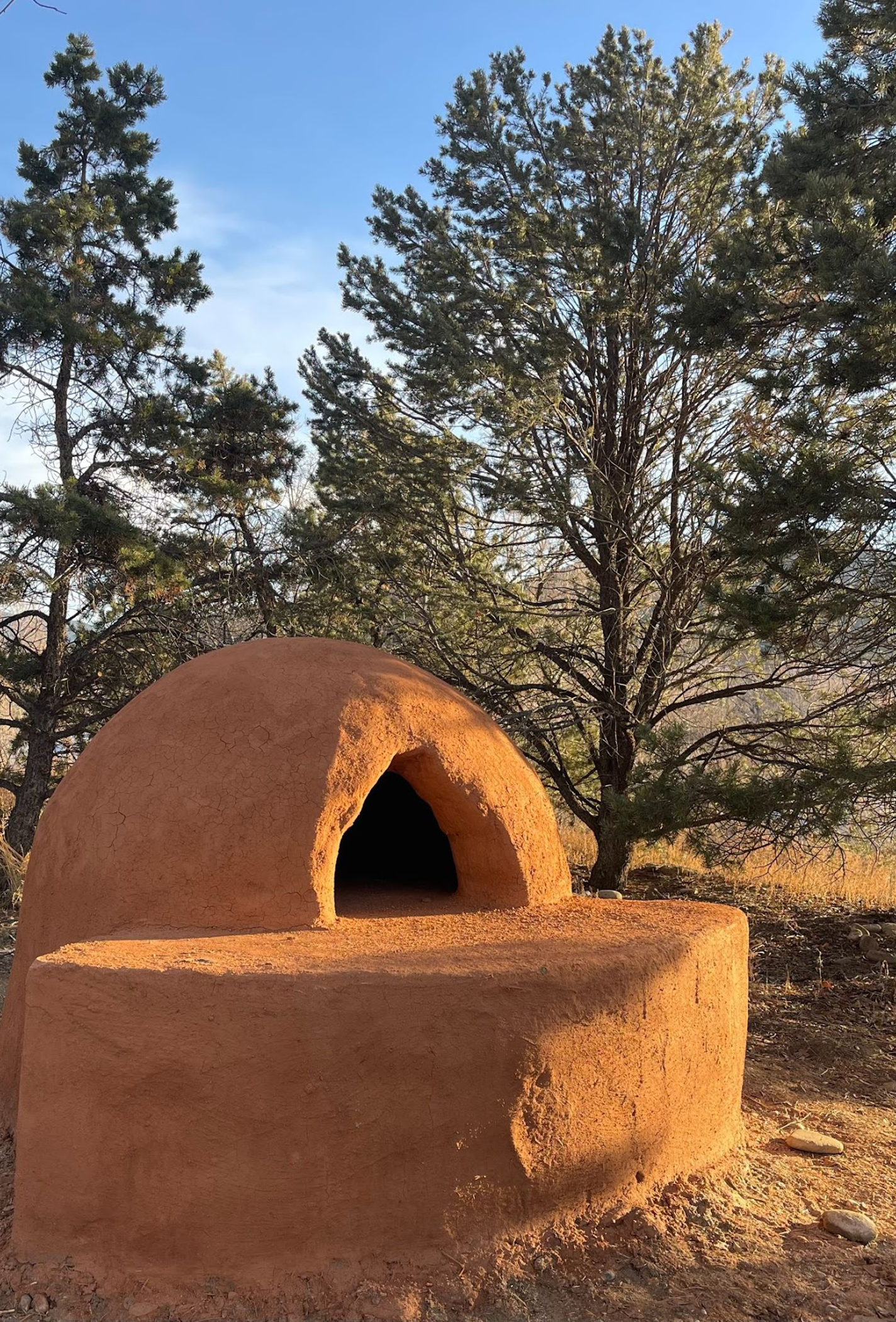 An adobe horno. Tsosie is dedicated to reviving the use of adobe in the construction of these ovens.