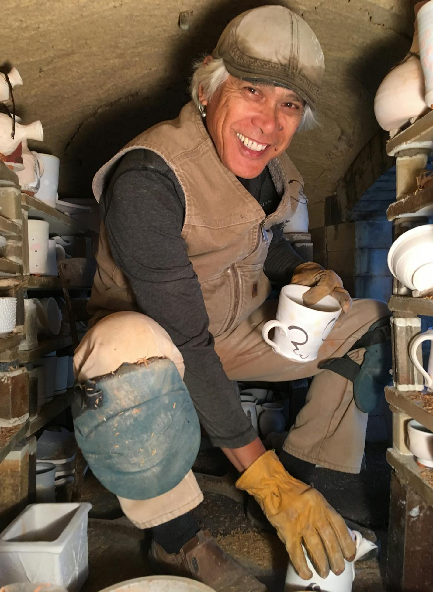 Conrad Calimpong is a ceramist who lives and works in Ferndale in rural Northern California. Working with clay since 1969 and wood-firing since 1985, his love of the medium grew out of a high school summer job cleaning a community college ceramics lab. “I became fascinated watching the older college students throwing on the wheel and hand-building. I was hooked,” he says. Claire Voon wrote about his kilns and the community surrounding them in “Kilns That Build Community” in our Fall 2022 issue.