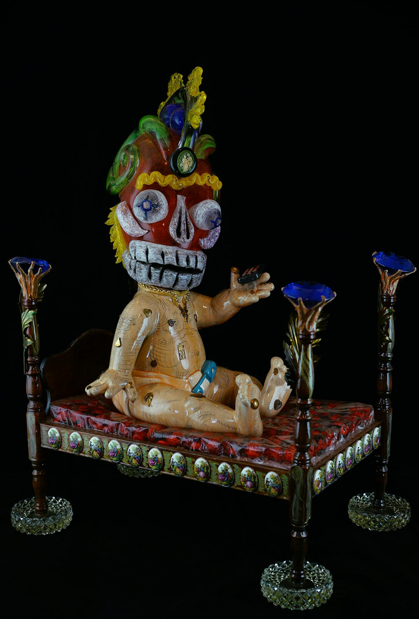 Einar and Jamex de la Torre, El Imortal, 2010, blown-glass, mixed-media art with car rim, 41 x 22 x 16 in.