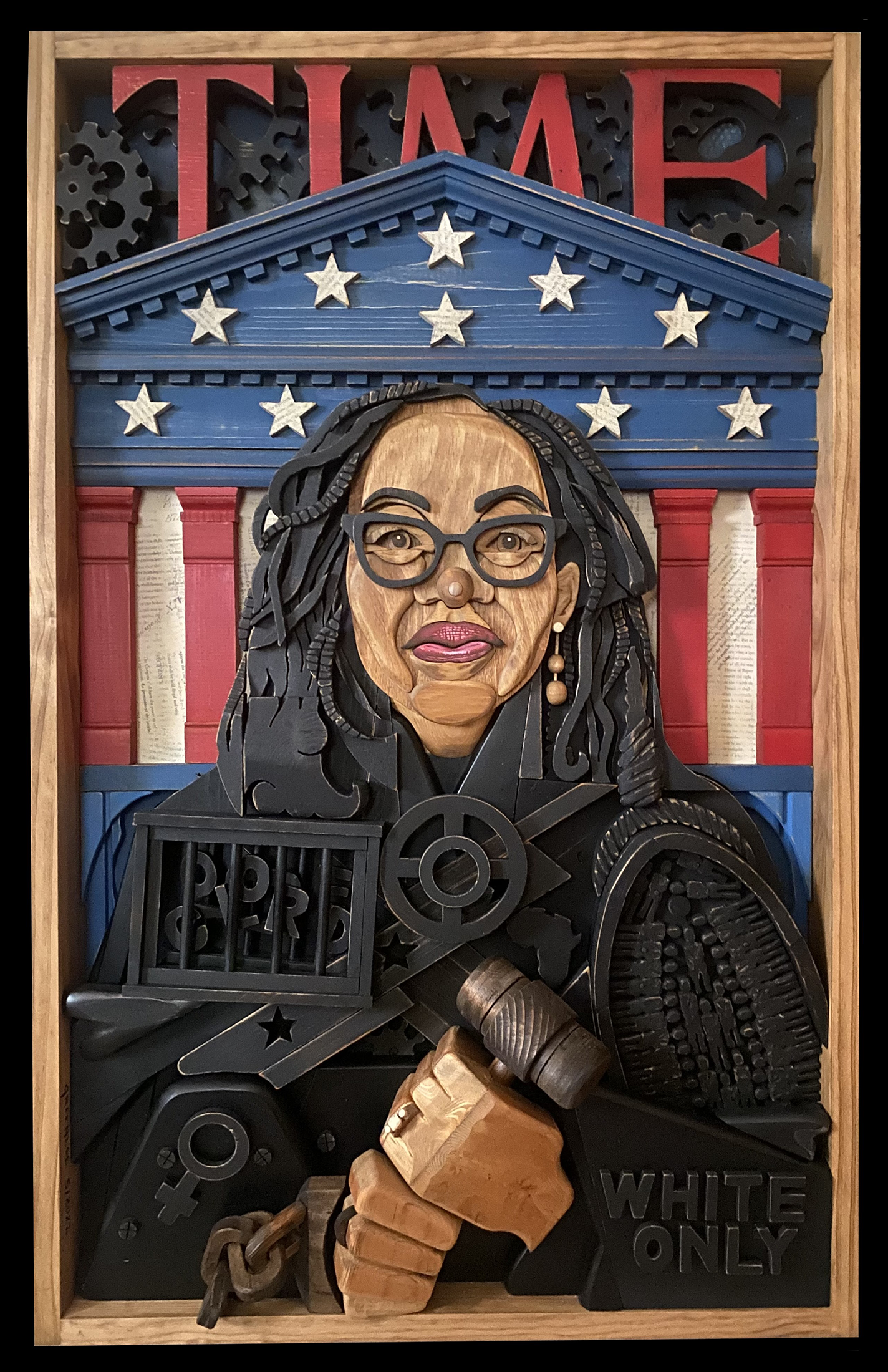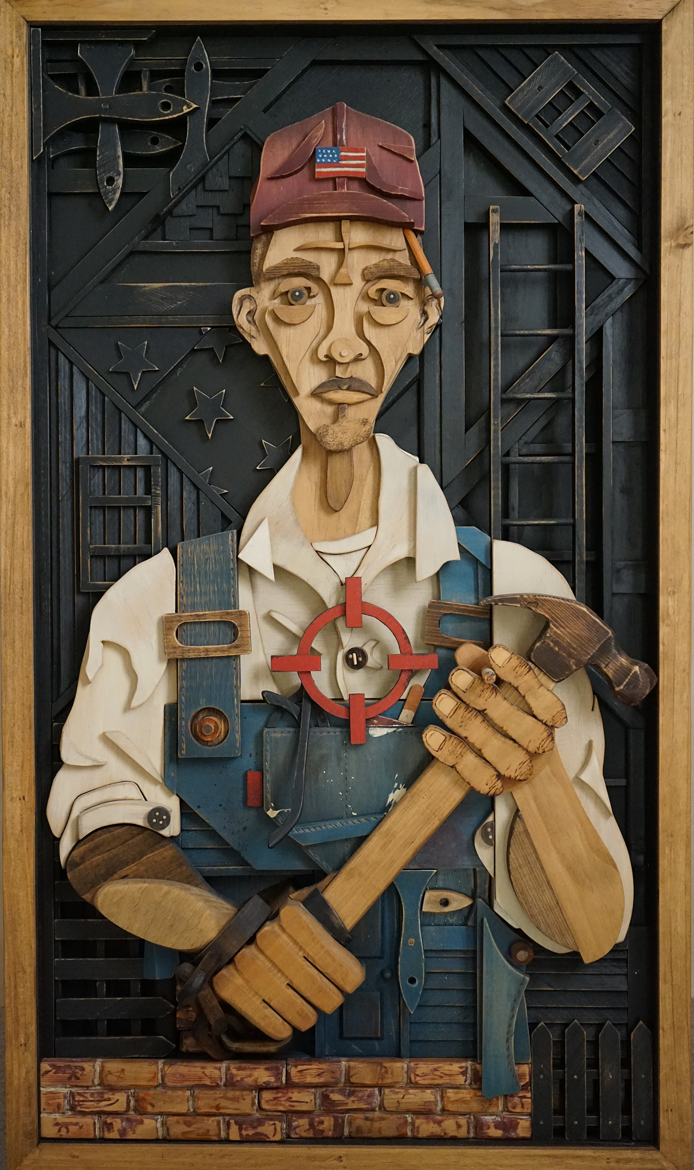 Each collage—made from layers of wood and painstakingly assembled over an average of 400 hours per piece—is carved with chisels and saws, then joined with wooden dowels to create images that celebrate Black identity and explore racial justice. But don’t call Greenlee’s collages assemblages—the works are derived from her painting practice, taking the traditionally flat art form into the third dimension. “I outgrew the two-dimensional nature of paper and canvas,” she says. “I wanted to create depth and dimension, work that couldn’t be printed.” Born in Philadelphia, Greenlee moved to South Carolina as a child. She earned a fine arts degree from Clemson University and worked as a freelance textile designer while raising her son. Greenlee still lives in South Carolina, where she focuses on creating artworks that invoke social change. Anitra Budd wrote about her work in “From Canvas to Carving” in the Fall 2025 issue of American Craft.
