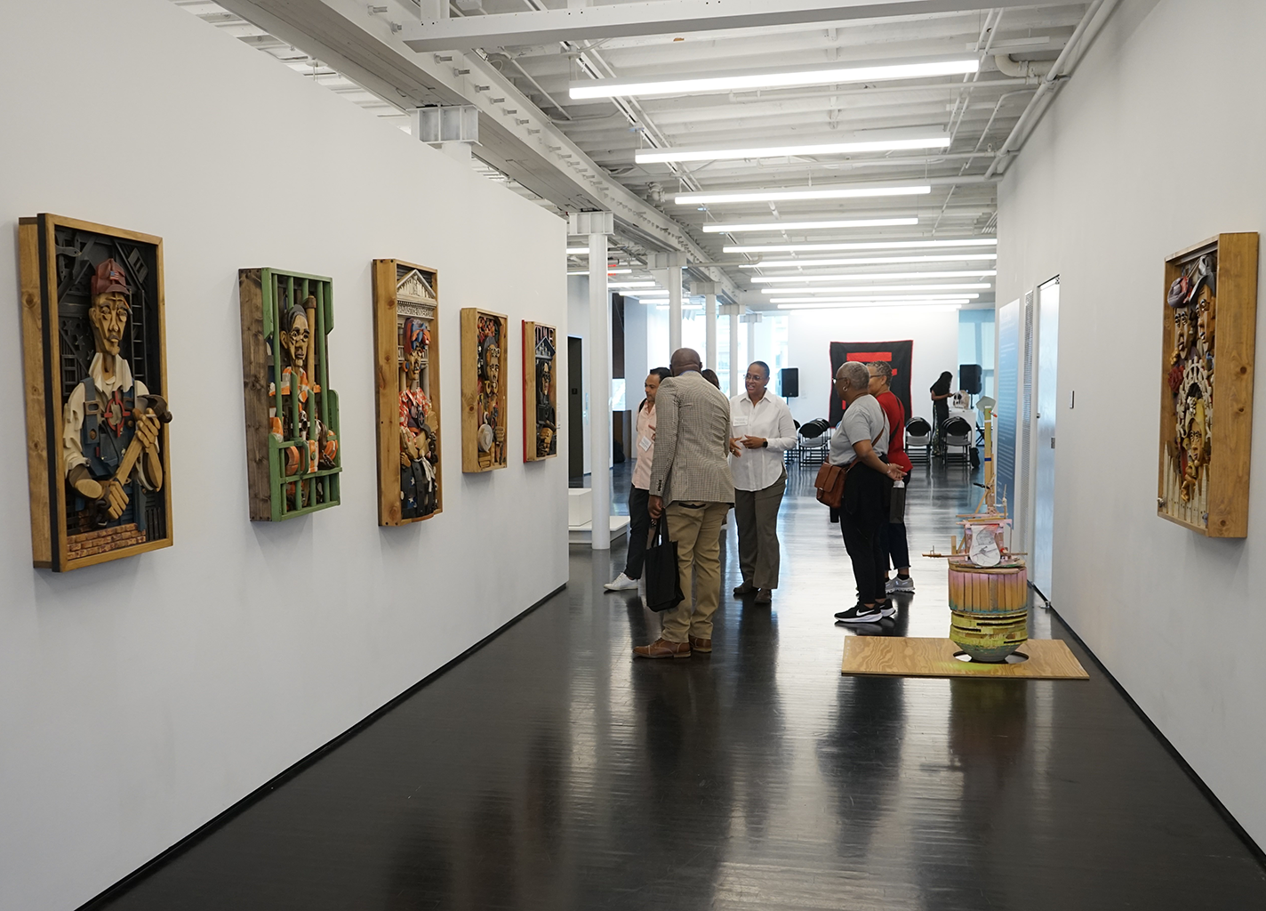 I describe my work as “wood collages.” I have always wanted to paint because that was my first introduction to art. Then I saw a Romare Bearden collage and thought, “I can do that.” I found it hard to source images from magazines, even though I had a large stockpile of my mother’s old Ebony magazines. Without having to abandon painting, I created my own form of collage by layering stained and painted wood and occasionally other objects to create my work.