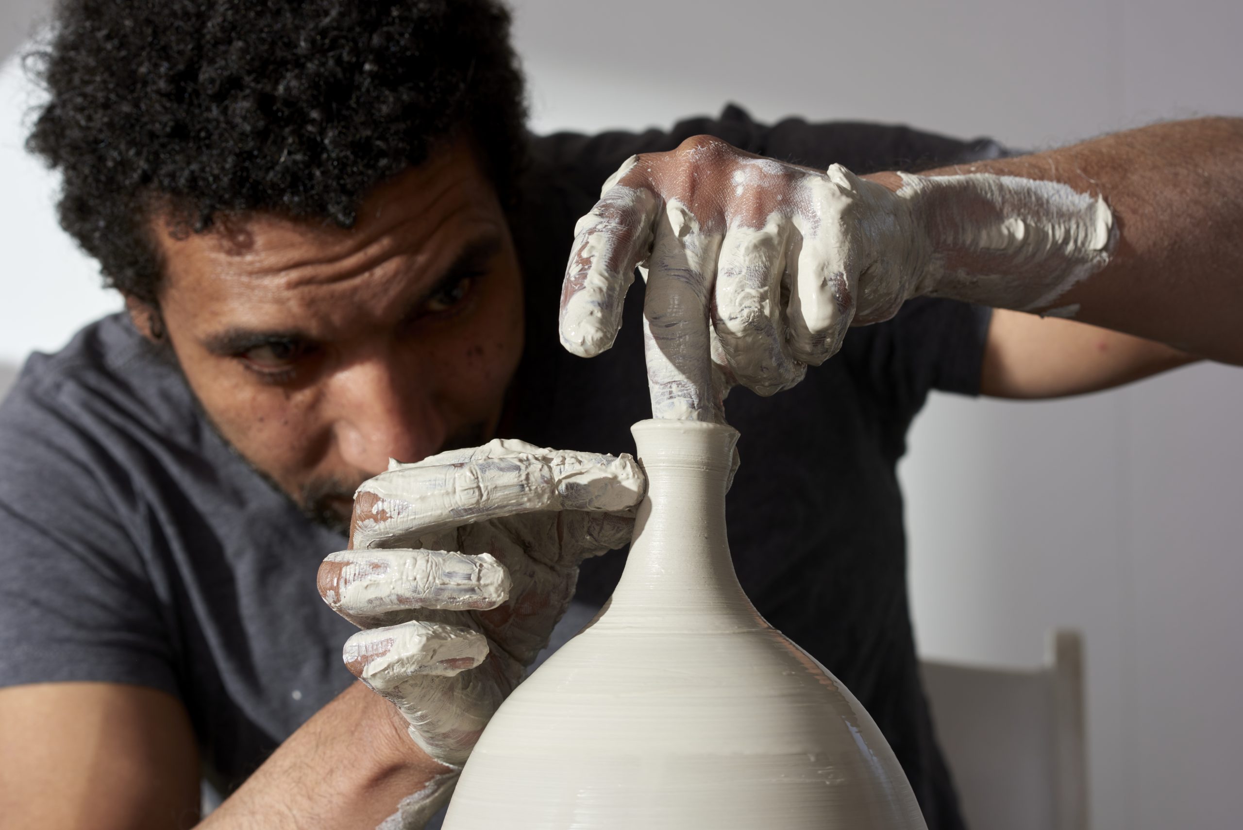 Ibrahim Said was raised with clay. During his upbringing in Fustat, a Cairo neighborhood known as the home of Egypt’s commercial pottery industry, Said’s father ran a ceramics workshop. There, the artist threw countless pots, absorbing ideas from his father’s artist friends and mastering his materials at a rapid clip. “Being close to him brought me close to clay,” Said says of his father. “Although he never pushed me to follow his path, he made me believe I could make anything I wanted with it.” With his father’s encouragement and his own advanced technical skills honed over hours on the wheel, Said left Fustat in 2002 to exhibit work throughout Asia, Europe, and the Middle East, before emigrating to Greensboro, North Carolina, in 2012.