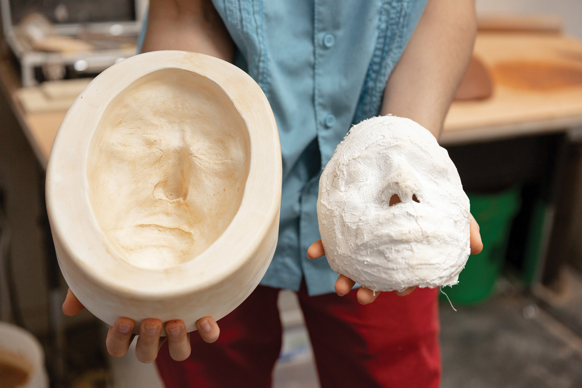 Crafted from life-cast molds, the artist’s sculptures incorporate labor implements, ceremonial dress, and gold luster to depict the labor, lives, joys, and struggles of Latin American workers in the United States. He is currently artist in residence at the Interdisciplinary Ceramic Research Center at the University of Kansas. His sculpture Seeds of Tomorrow/Semillas del Mañana appears in the upcoming Figuring Space exhibition at The Clay Studio in Philadelphia, which Jon Spayde wrote about in “Standing in the Room Together” in the Winter 2023 issue of American Craft.