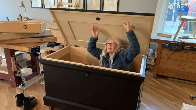 Megan Fitzpatrick has long been a teacher. She pursued a PhD in Shakespearean literature at the University of Cincinnati and taught English classes there while moonlighting as an editor at Popular Woodworking. Her encounters with woodworking shaped her life in ways she couldn’t have imagined. “I planned to resign from the magazine once I finished my PhD, to go off to teach Shakespeare,” she says. “Instead, I resigned from academia when I fell in love with woodworking.” Longtime colleague and collaborator Christopher Schwarz, the cofounder and publisher of the decidedly old-school Lost Art Press, hired her as editor there in early 2022. Fitzpatrick teaches woodworking classes at Lost Art’s Covington, Kentucky, offices and workshop, guiding students through building benches, chairs, trays, and more. She is currently working on a how-to book on building a Dutch tool chest for the imprint, which is scheduled to be published in 2024. Sarah Marriage wrote about Fitzpatrick and Lost Art Press in “A Hardworking Press” in the Winter 2024 issue of American Craft.