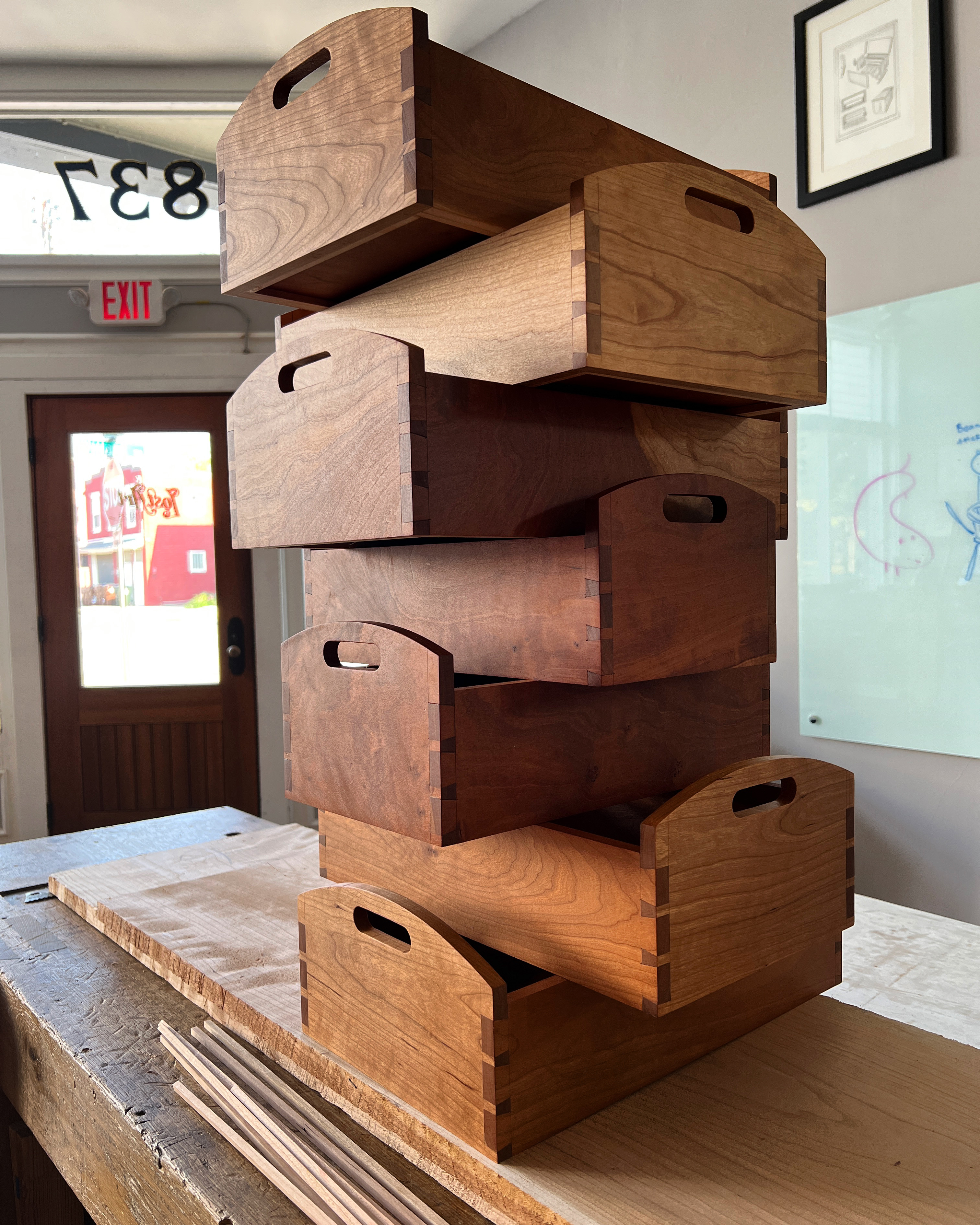 Most of my woodworking takes place while teaching it (I teach mostly hand tool beginners). I missed teaching when I resigned from academia, but I’ve since found that teaching woodworking is even more fun than teaching English literature—the students want to be there, and there’s no grading! (And now I can read literature for fun rather than with an eye toward writing quizzes.)