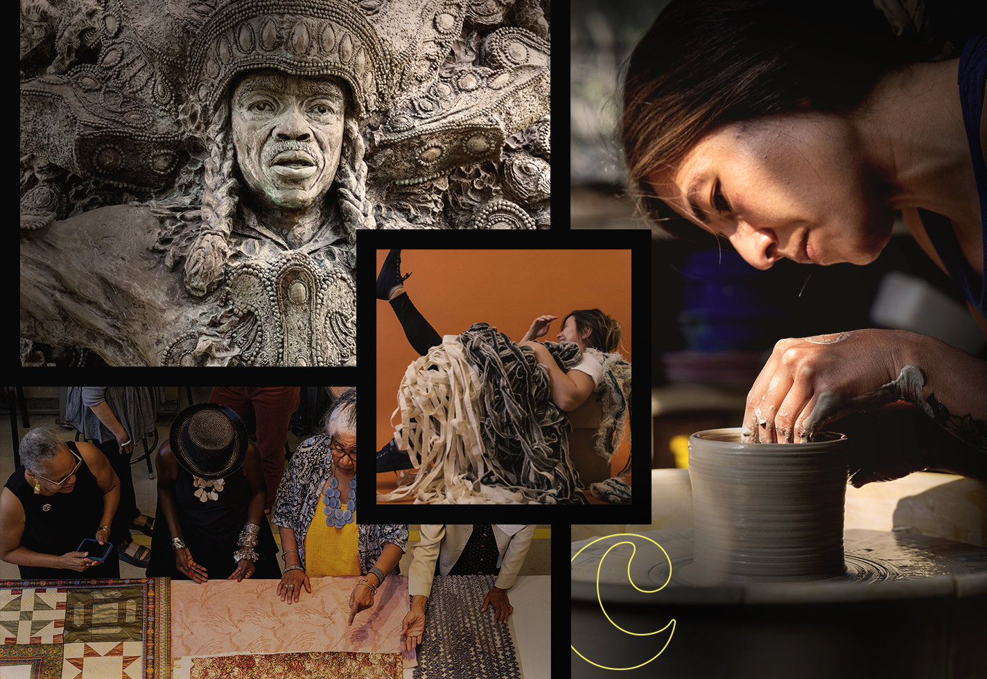 Second Skin focuses on “works that relate to the human body while conveying personal narratives, cultural heritage, and intimate stories,” says Belger Arts Operations Manager Katie Hogan, who led the exhibition’s curation. The show features works by Cheryl Eve Acosta, Shae Bishop, Hadley Clark, Mona Cliff, Patrycja Grzesznik, Kit Paulson, Rob Stern, Kate Kretz, Ellen Greene, and Renée Stout.