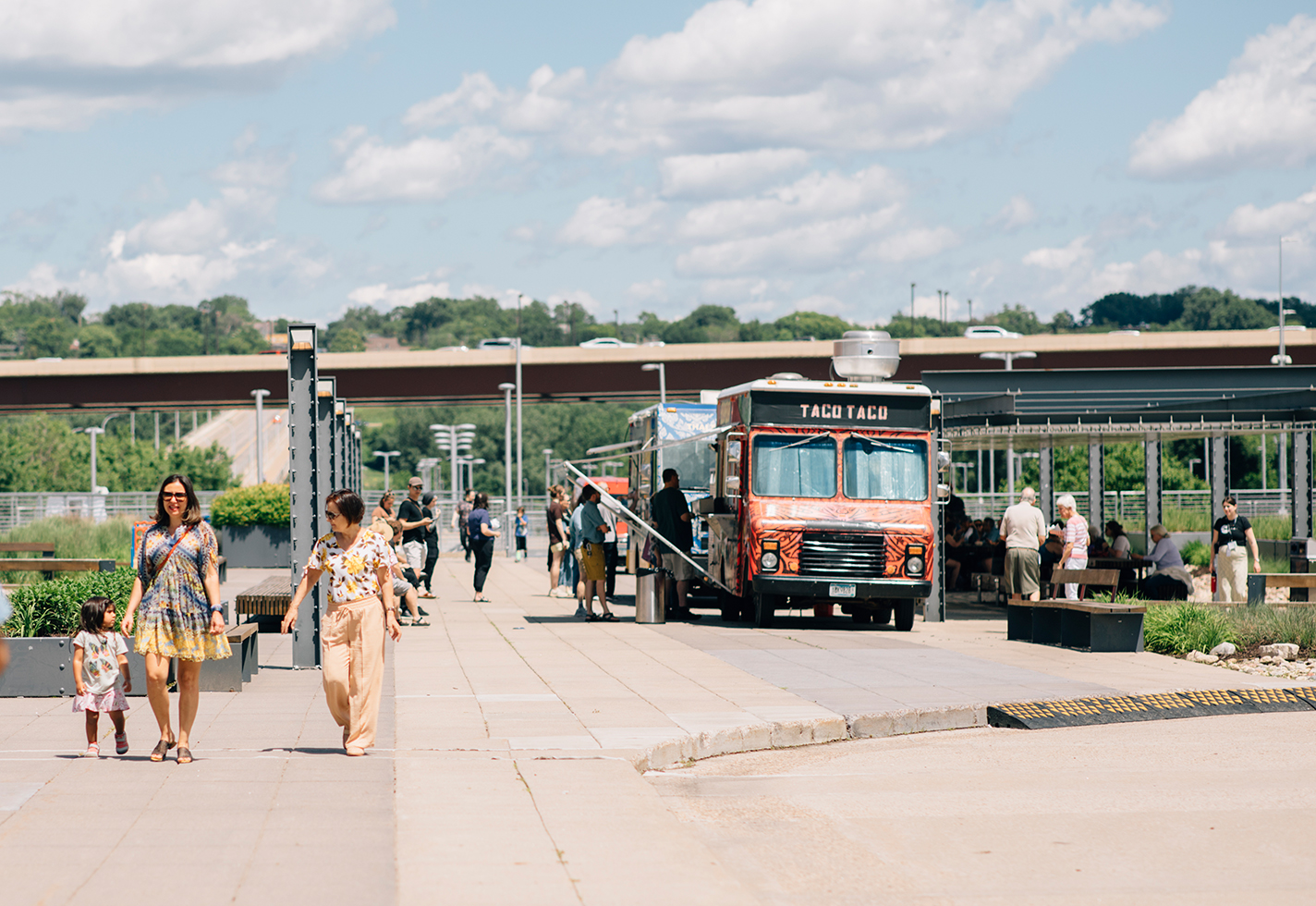 Sample and purchase food and beverages from a variety of local and regional vendors.