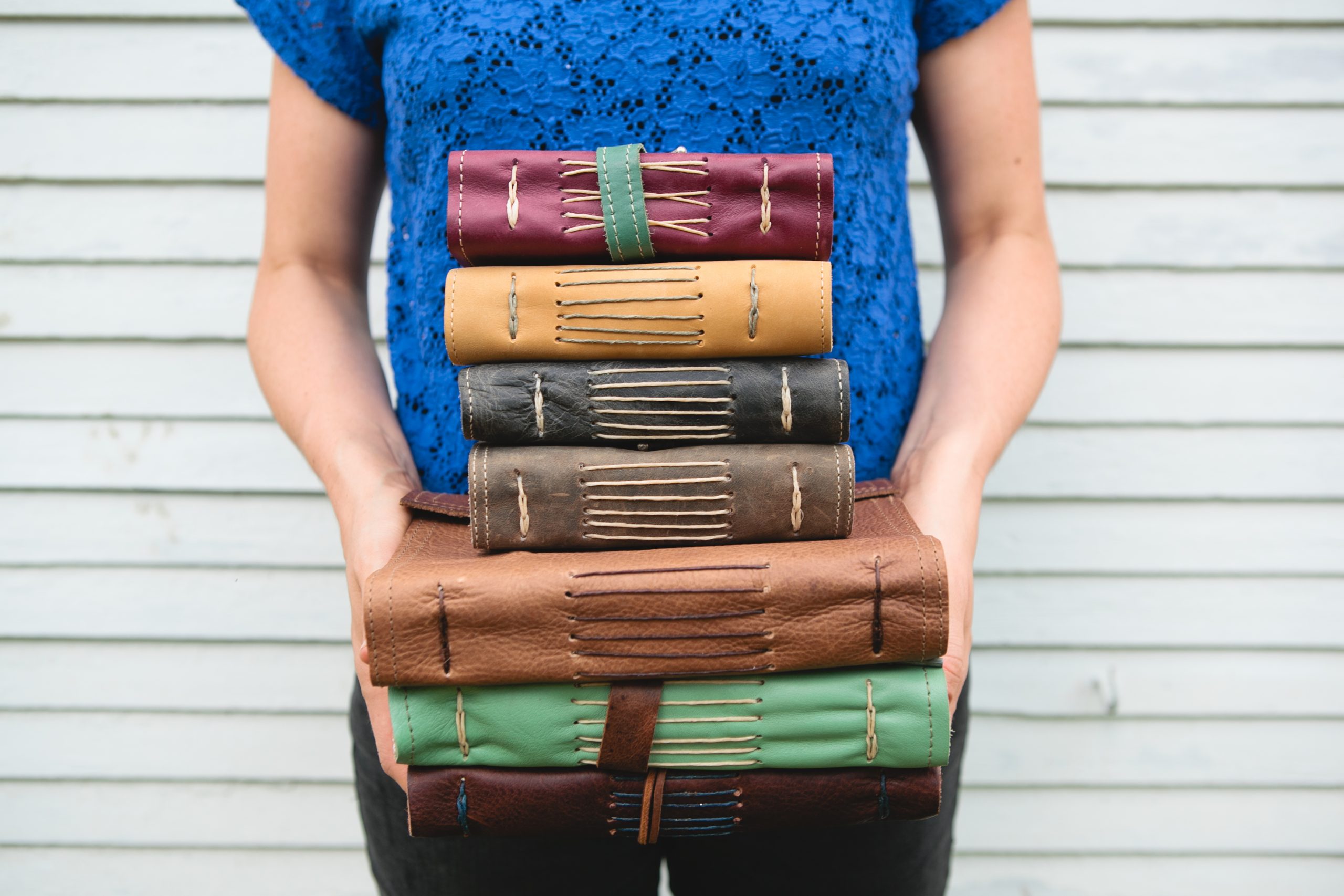 A lifelong lover of books, reading, and keeping a journal, bookbinding was a natural fit for mixed-media artist Megan Winn. After receiving her B.A. from Anderson University in Studio and Fine Arts, Megan went on to pursue private tutelage from a Master Book Artist for a year and a half while starting her company, The Binding Bee. After launching Binding Bee, she spent over a decade exhibiting and selling her books at fine art fairs around the Midwest and in local galleries in Indiana. Her focus has been on creating uniquely handcrafted journals that are functional and beautiful. She deeply cares about her materials and uses things that are salvaged, or thoughtfully and ethically sourced. Currently, Megan is a full-time stay-at-home mom to three vivacious young kids, but she continues to feed her soul and creativity by making books in the margins of her carved-out time.