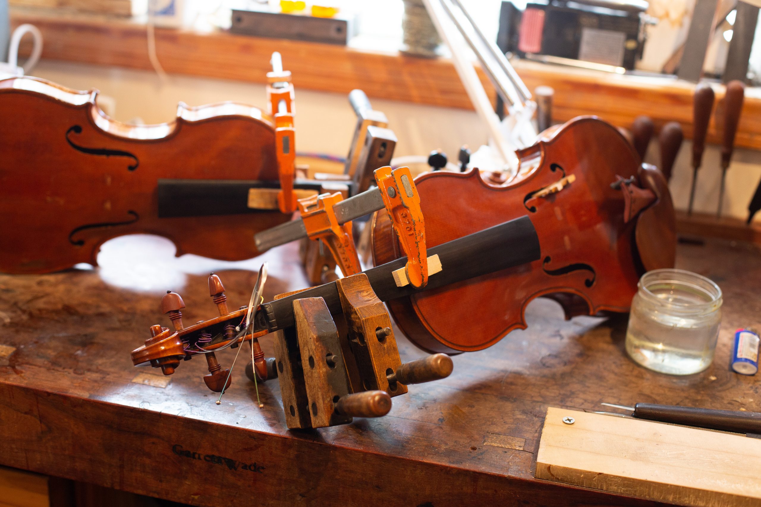 Eric has specialized in the making of fine violins, violas and cellos based on the great Italian masterworks, and even a few viola d’amores–crafting over 120 instruments to date–while perfecting the old-world style and working traditions that mark his current work. He has been honored to accept special commissions, including bench copies of the Peregrino de Zanetto viola and a Giovanni Francesco Pressenda violin owned by the LA Philharmonic.