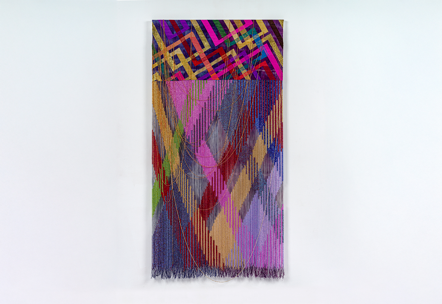 The title of this show, Morabito’s first solo exhibition, pays homage to the music and persona of Sylvester, the pioneering 1970s Black gender-fluid disco star. Morabito’s shimmering, multicolored tapestries further the quest for queer freedom and expression as an act of resistance to political and social forces.
