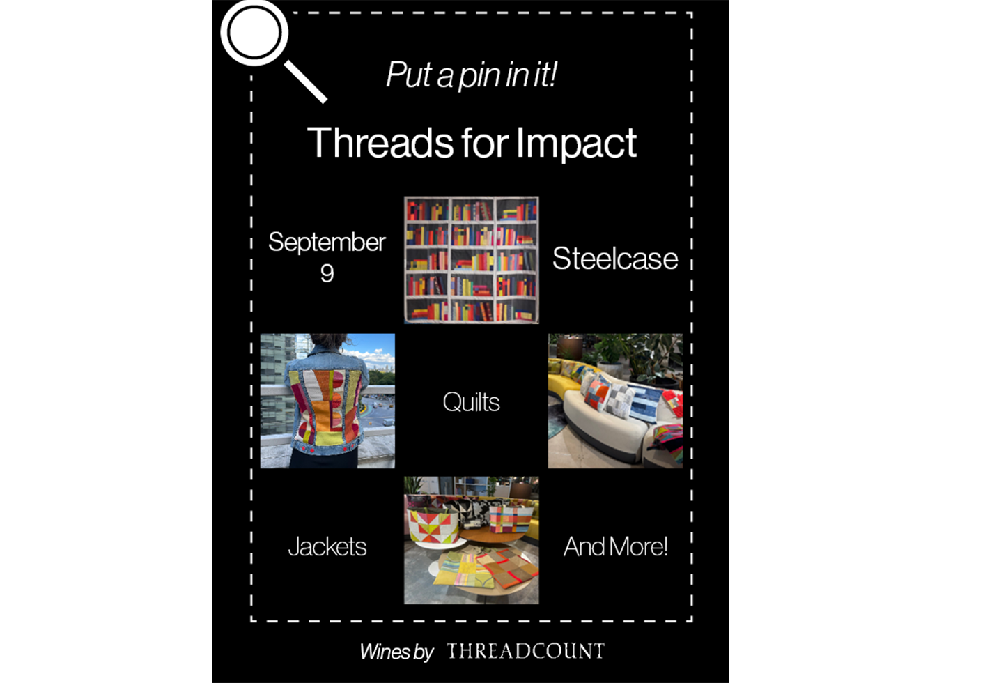 DIFFA and Sewciety present Threads for Impact, taking place Tuesday, September 9, from 6–9 p.m. at the Steelcase showroom. The evening unites the design community with a purposeful auction and sale of upcycled pieces crafted by top artisans. Tickets are $125. VIP tickets are $150. All proceeds benefit DIFFA (Design Industries Foundation)’s ongoing mission to fund grants for underserved communities.